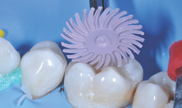 After using the 3M™ Sof-Lex™ Pre-Polishing Spiral, a final high-gloss polish is created using the 3M™ Sof-Lex™ Diamond Polishing Spiral on a moist surface (Fig. 7).