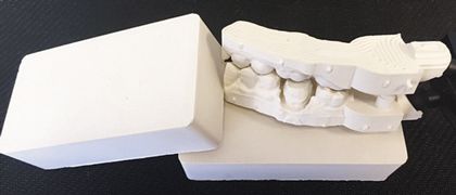 We had to mill about 500 discs all made from different formulas. We tried different colors, putting resin in it, mixing it with plaster, mixing it with agents to cut down the dust ... all kinds of things. A lot of trial and error went into the development of the gypsum. We just kept blending and testing. The fact that we could work on the finished product meant we really didn’t care if it expanded a lot or a little. We make stone that does both, and we’d figure out a good blend for a perfect model. And these do that.