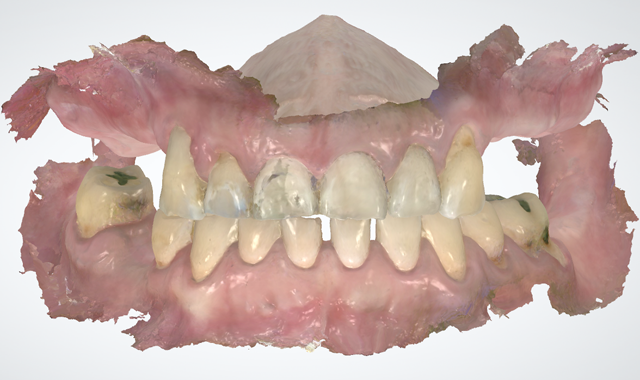 Final impressions and the jaw relationship record are taken at a single appointment in full color using the Trios Intraoral Scanner (3Shape A/S, Fig. 2). The scanner records color information and captures all tooth and tissue areas with ease, and transmits the scans electronically to the lab within minutes after being taken.