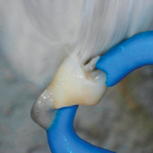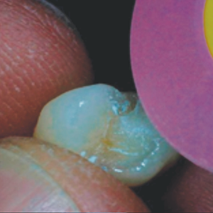 Clear was applied 60° around the incisal area and contact points of the adjacent teeth (Fig. 7).