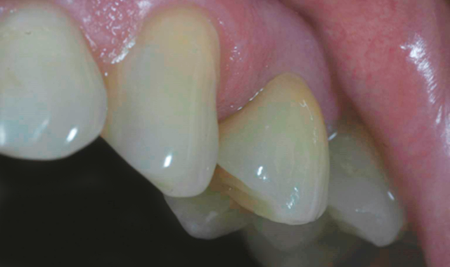 You’ll see here a properly fitting zirconia coping with adequate ceramic support. There’s a perfect seal of the margin (Fig. 2).