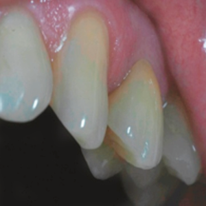 To accentuate color, such as in the cervical areas, PFZ stains can be used. Even with a thin layer of ceramic, the proper color that enhances the depth was attained (Fig. 5).