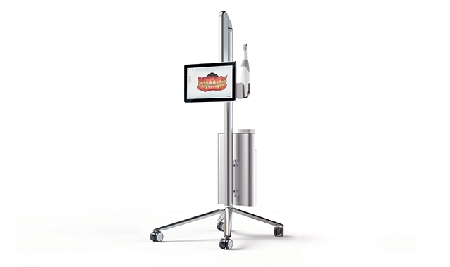 The new TRIOS MOVE takes sharing to the next level, with the computer and scanner positioned on a wheeled module that can easily travel to different exam rooms as needed. This apparatus has a flexible arm that allows the viewing screen to be brought down to each patient’s level and positioned at any angle to enable him or her to see what the dentist sees while suggested procedures are explained. Procedures play out on screen in front of patients via the TRIOS MOVE treatment simulator, showing patients the end result using their actual teeth and gums.