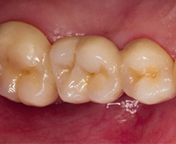 Figure 8A: Occlusal and lateral view on the conventionally luted 3-unit FPD