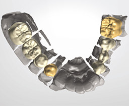 Figure 9: Virtual design for a complete posterior restoration in the mandible combining monolithic and fully veneered Cercon ht Shaded Zirconia crowns and FPDs