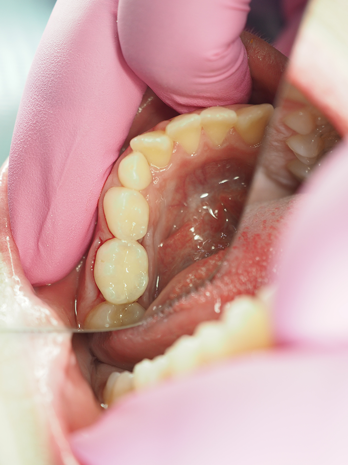 The patient appeared to have a very positive experience, and the parent was quite pleased, both with the child’s behavior and the finished restoration. The patient and parent reported no reaction to the visit nor the materials used.