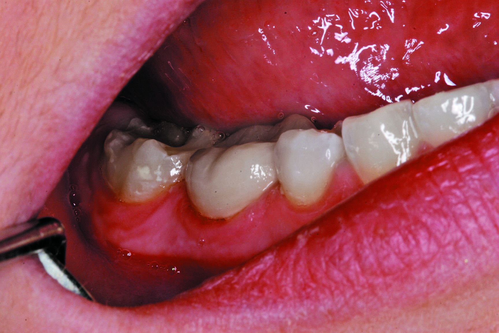 Step 2: At the delivery appointment, an Isolite was placed, the provisional was removed and temporary cement was cleaned away (Fig. 1). Anesthesia was not necessary for this procedure.