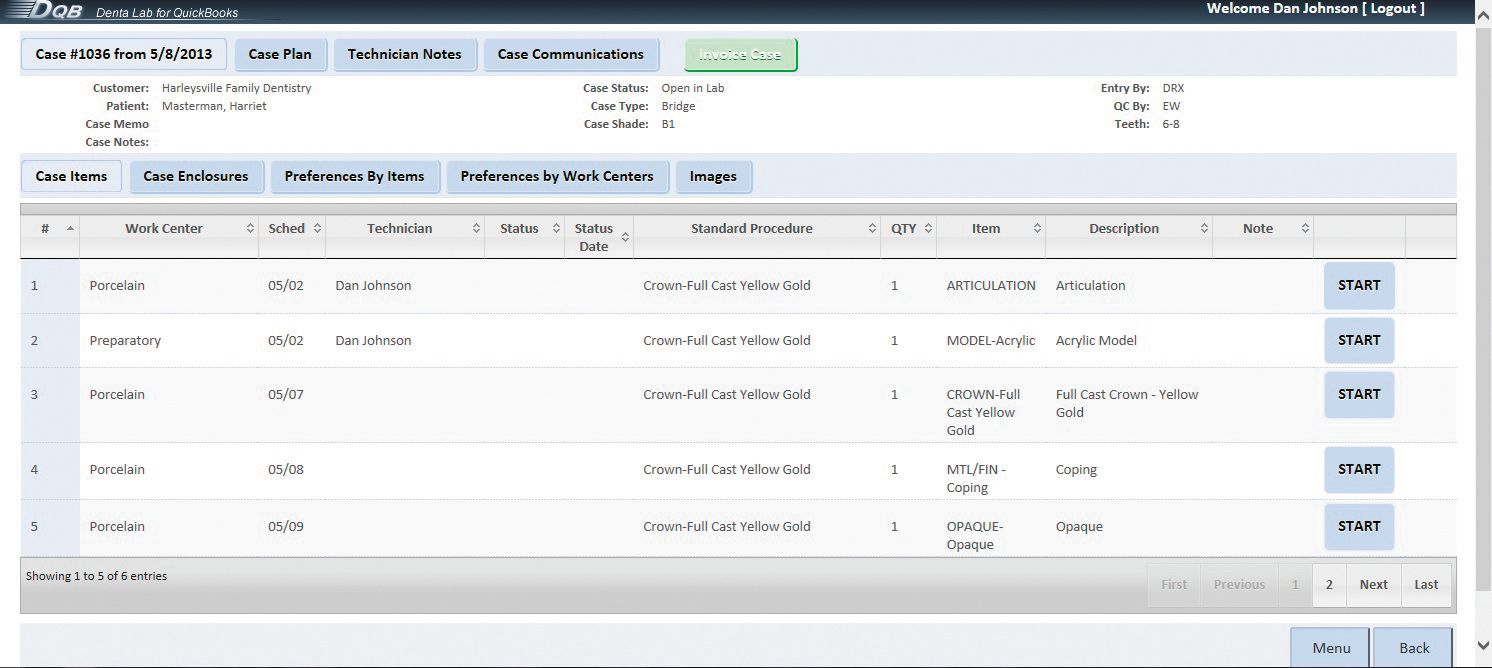 Dental Lab Workflow (for DentaLab QuickBooks) is a Web-based app that is specifically designed for use with tablets such as the Androids and Apple iPads in conjunction with DentaLab for QuickBooks, but can also be used on the desktop.