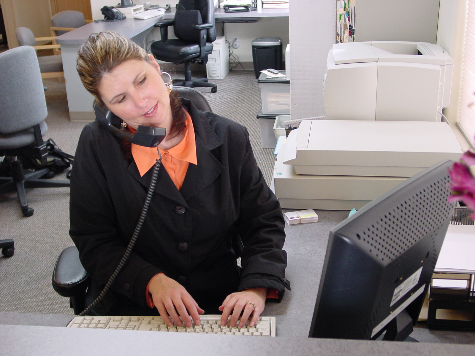 Perhaps the most dangerous of all front office risk factors is holding the phone between one shoulder and ear. Why do so many front office people do this? Simple: because they don’t have three hands! Usually, the phone conversation requires utilizing the computer, which requires both hands. Invariably, this habit will eventually cause neck and shoulder pain on one side of the body. Wireless phone headsets should be considered mandatory for all front office workers who spend more than 25 percent of their time on the phone. This is an easy and comfortable solution that can be worn over one ear, and calls may be answered from afar in the office through a remote phone lifter device.