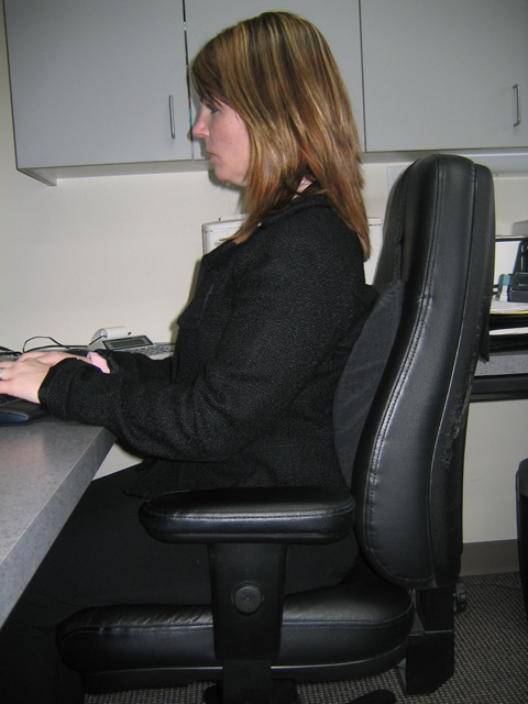Although most front office executives are female, the majority of office chairs are designed for the average European man. Walk into any generic office store looking for office chairs and you will find many large, cushy office chairs, with tall backs, no lumbar support and reclining tilt features. These office ‘thrones’ that reflect authority are a vestige of years gone past, when important political figures required large thrones with high backs to reflect status. Unfortunately, most ergonomic considerations (if there ever were any) went out the window with this chair style. Two problems predominate this chair design: deep seat pans and no lumbar support.