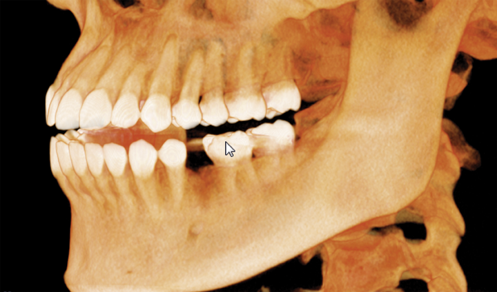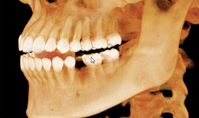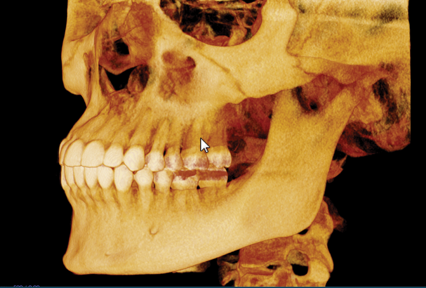 To start the process, we took an i-CAT CBCT at 16cm x 11cm as a 0.25 voxel size (Fig. 2). I chose a full field of view size because Yari had some dental issues on the lower right-hand side to check as well, so I needed to have additional information on that area.