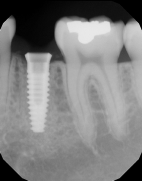Since she worked in the office each day, she said that after hearing my discussions with patients about cutting down healthy teeth and making a three-tooth problem instead of a one-tooth problem with conventional bridges, she wanted to have an implant.