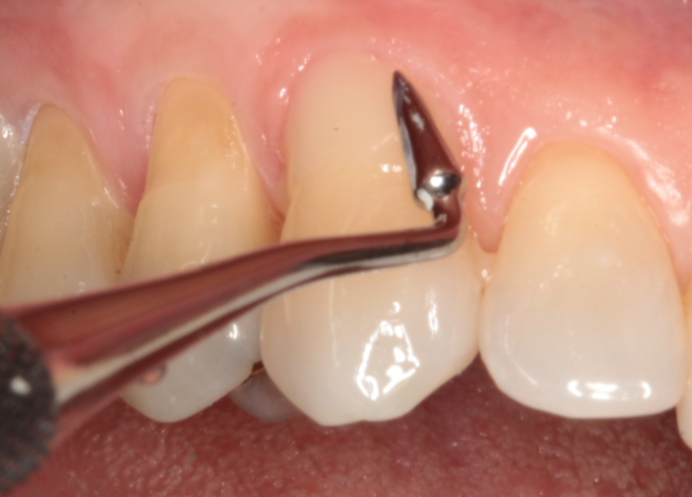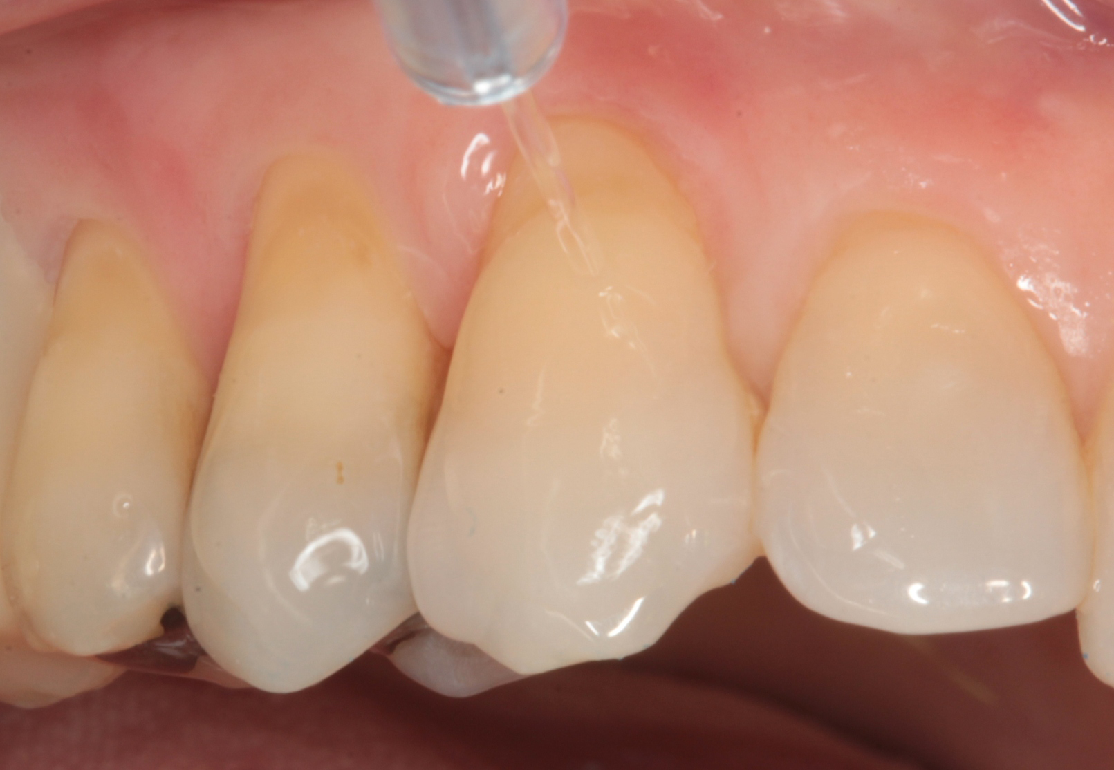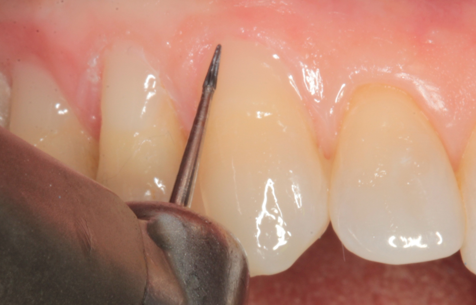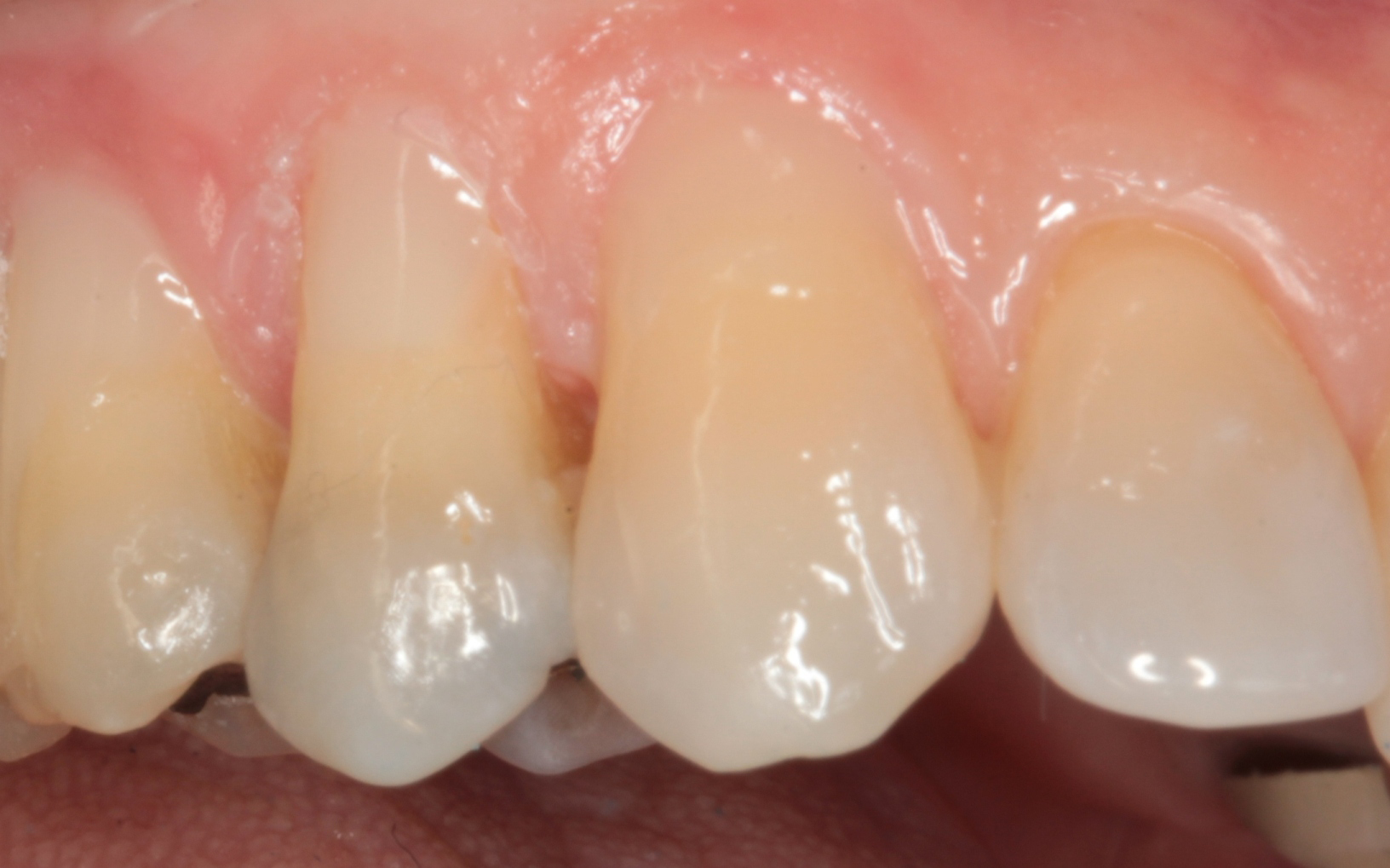 Figure 1 shows a patient with non-carious Class V grooving in the canine, first premolar and second premolar teeth. The molar has already been restored with a full crown. Restoration was desired by the patient for esthetic reasons.
