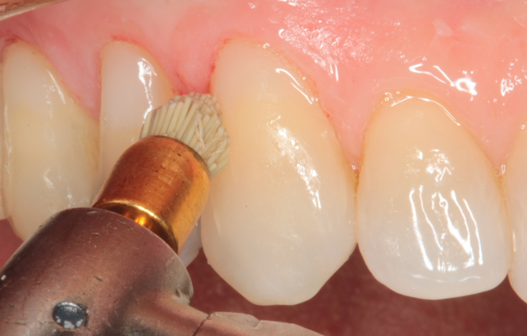 Smoothing of the composite surface was performed using an E2hance cup by Dentsply (Fig. 13) and polishing was accomplished with a diamond impregnated brush (Fig. 14).