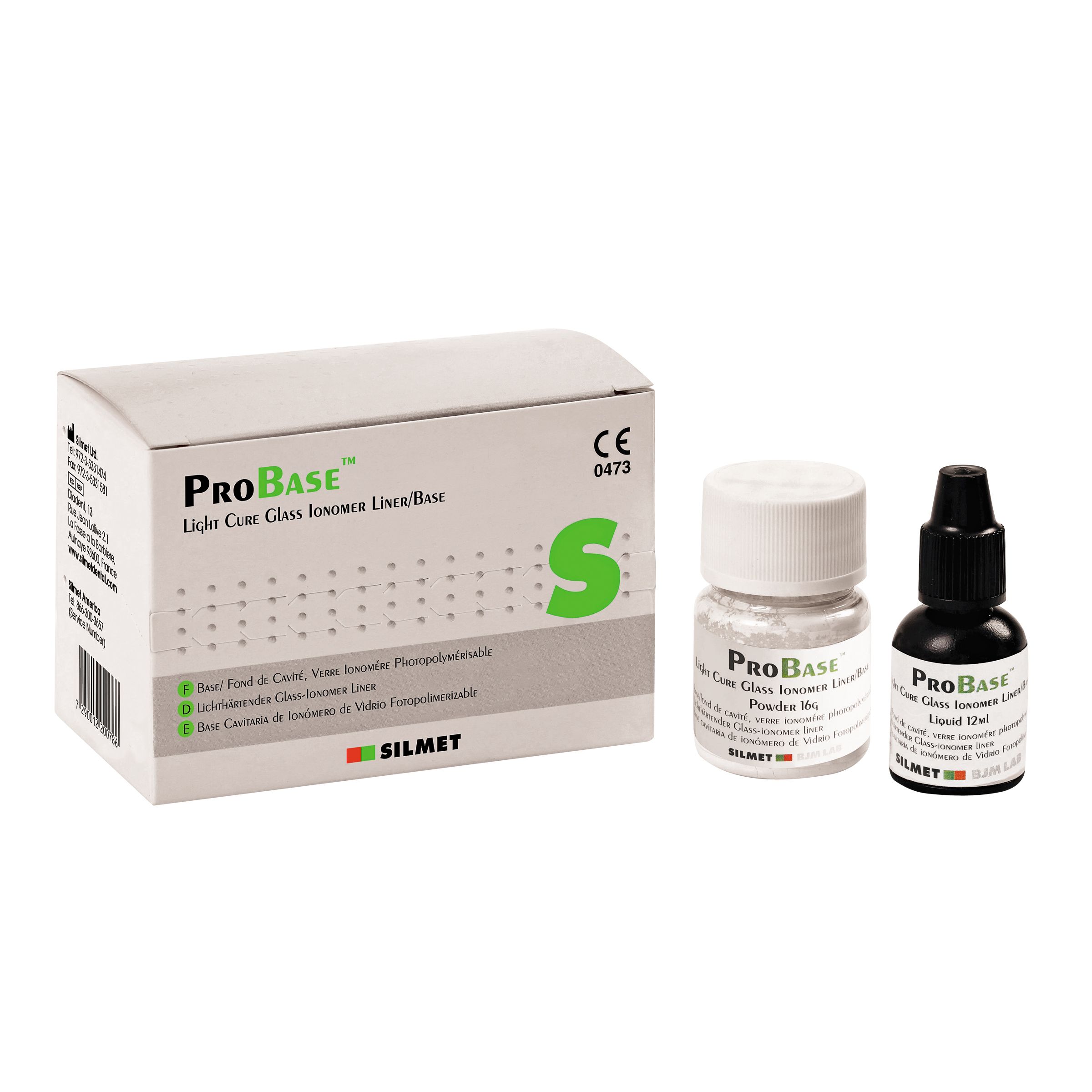 ProBase is a light cured, high fluoride releasing resin-modified glass ionomer cement designed for use as a liner-base material under any kind of restorative material and offers a suitable solution for pulp isolation and protection. It exhibits excellent mechanical and esthetic properties. Featuring strong adhesion to dentin and excellent mechanical properties, ProBase is the perfect liner/base solution to help protect dentin.