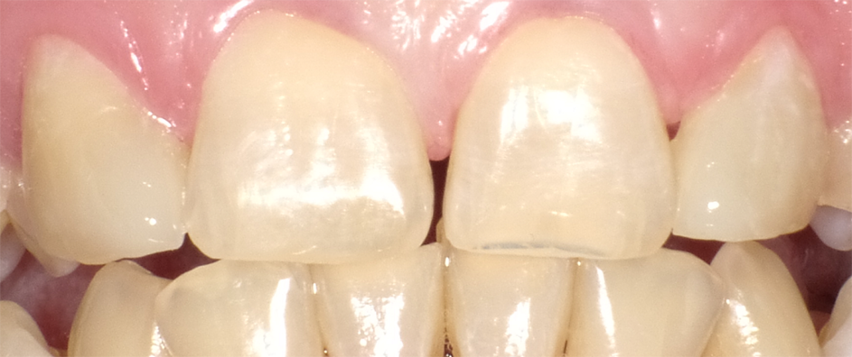 The anterior esthetic contour changes featured here were completed using Admira Fusion Flow after etching with phosphoric acid for 15 seconds before Futurabond U was applied, air-thinned and light-cured. Each bonded restoration was shaped with the aid of a transparent vinylpolysiloxane stent made on a corrected diagnostic cast. The outline form of #7 was created using Admira Fusion Flow Incisal shade followed by shade A2 Admira Fusion Flow formed using a mylar strip, then light-cured. At the restorative appointment, an alginate impression was used to create a Snap Stone model. Waxed-up tooth forms, and silicone stent were then constructed. Etched tooth surface received Admira Fusion Incisal followed by shade A2 Admira Fusion Flow, shaped using a mylar strip. Contouring was completed with an 8-fluted T6 finishing bur followed by polishing with a Patterson Green abrasive cup, a Patterson Yellow abrasive cup and a Caulk Enhance polishing cup.