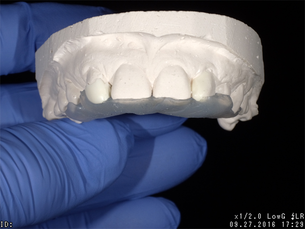 Admira Fusion restorative material, available in 17 shades, is indicated for all Class I-V dental restorations. Handling like a packable composite resin, Admira Fusion condenses easily into cavity preparation with light pressure providing good shape stability prior to curing. Figure 1 illustrates pre-treatment view of diastemata. A diagnostic cast was quickly constructed from an alginate impression and a silicone stent formed from a diagnostic wax-up (Fig. 2).