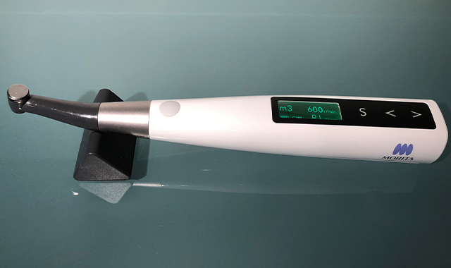 Endodontic treatment can sometimes be a daunting procedure in dentistry. When performing a root canal, the best approach is to find your comfort zone. The MORITA Tri Auto ZX2 cordless electric handpiece (Fig. 1) allows for ergonomic positioning (Fig. 2) and unrestricted access without the feeling of being tethered to a base motor.