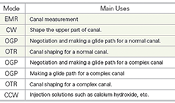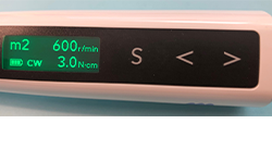 This handpiece has five different operating modes for canal shaping and measurement. There are also eight programmable memory settings (Fig. 3) that can be set in varying combinations of motor operation, speed, torque and automation level. The handpiece is preprogrammed for different stages of canal treatment. As the operator gets comfortable with each mode, the settings can be customized as needed.