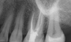 Once the canals are cleaned and shaped to their appropriate size, the root canal system can be obturated. In this case, the tooth was obturated using a warm vertical down pack with Obtura backfill (Figs. 12-15).