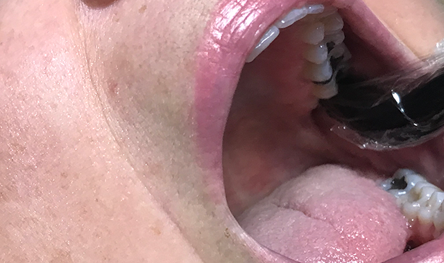 Also, at the end of long appointments, many patients complain their jaw feels stiff so I will treat this muscle at the end of the appointment, so trismus does not set in (Fig. 7). It is a large muscle, so I use a cluster LED probe and use an inhibition dose.