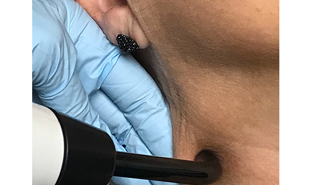 Fig. 7 A cluster LED probe and an inhibition dose is used in the masseter muscle.