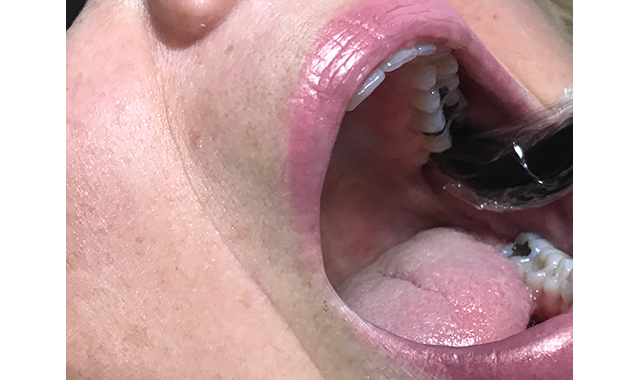 Fig. 4 The patient opens enough so the condyle translates and is out of the joint allowing the treatment of the structures inside the joint more accurately.
