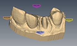 A digital scan (Fig. 15) was taken using the Planmeca Emerald. The total scan time of the preparation, the upper arch and the lower arch was less than two minutes.