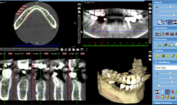 Patients routinely come to the office for consultations regarding the placement of dental implants for missing teeth. An ultra-low dose dental cone beam computed tomography image (ULD CBCT) is the only image taken during the consultation. The image shows all of the required information for answering the patient’s questions, for determining whether the patient is a candidate for implant placement and for virtually planning the implant.
