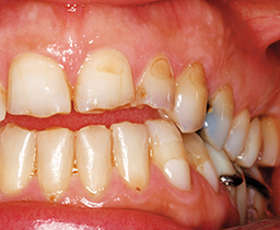 The patient was a healthy, 49-year-old female with no medical or dental contraindications to treatment. Initial examination of her current state showed extensive wear on her anterior teeth due to a lack of stable posterior occlusion. Her request was for a partial denture and composite restorations as an interim until she can afford to do more extensive crown and bridge work. This patient had a history of gagging during impressions, which became evident when taking diagnostic models.
