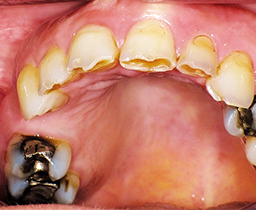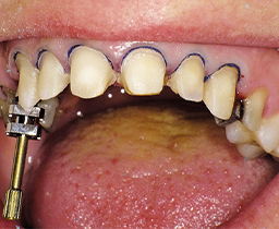 An implant was placed in the area of tooth #5, and following periodontal treatment and clearance for further treatment. Teeth #3, 4, 6, 7, 8, 9, 10, 11 and 12 were prepared for zirconia crowns.