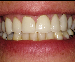 Following delivery of the crowns, the patient’s lower teeth were whitened using the Philips Zoom in-office system, and she was given a lower take-home tray for completion of whitening and future touchups.