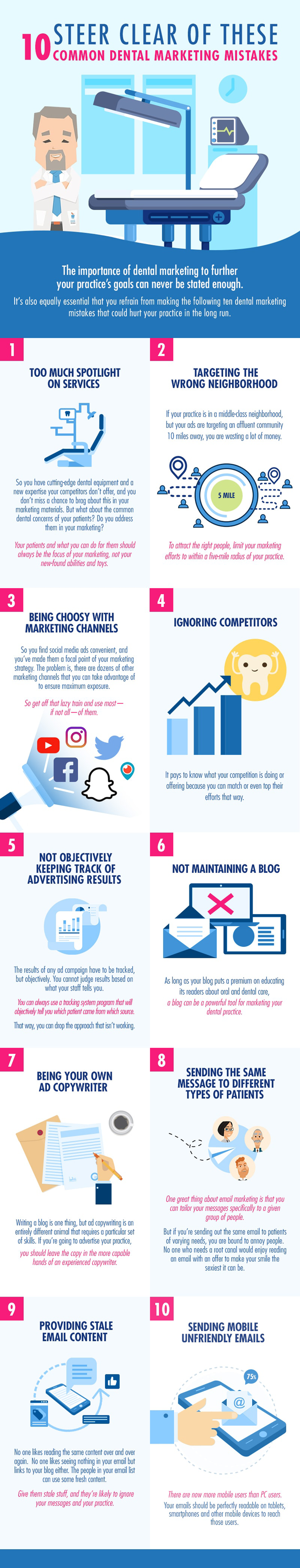 Just remember to steer clear of the common dental marketing mistakes detailed in the infographic below to get the best results possible.