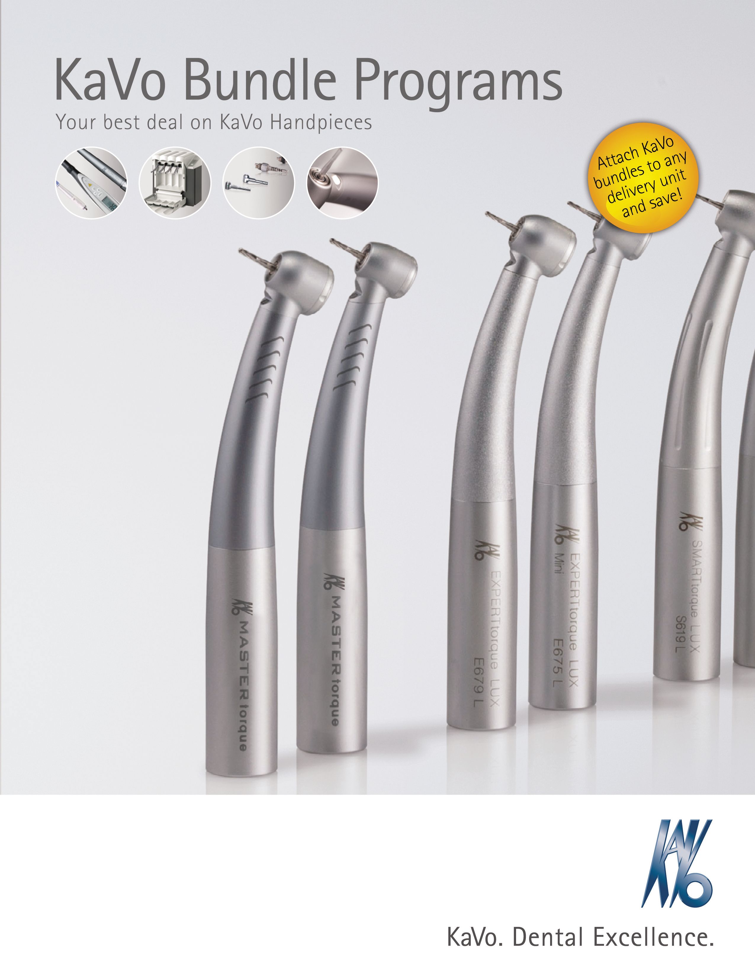 Through the KaVo Bundle Program, you can buy handpiece bundles at a reduced price, usually 35 percent less than if bought individually, when you update to a new delivery unit. Restorative, Operative, Endo and Hygiene bundles are available.