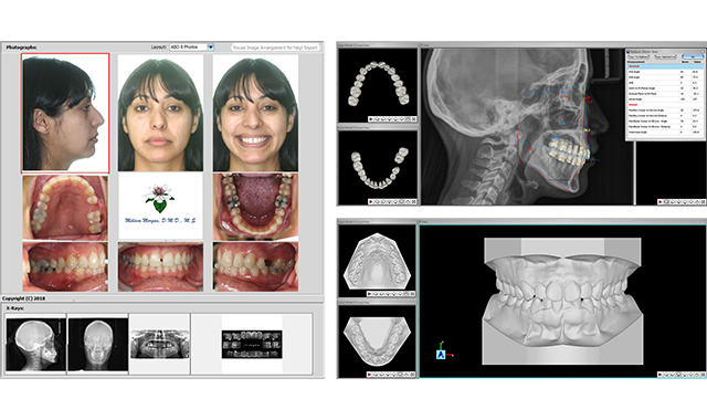 Data organizer: Ortho Share 3D™ is designed for importing, storing in individual patient folders, organizing, editing, displaying and exporting 2D and 3D data. Photos are easy to rotate, zoom/crop, align, organize and view in ABO format as well as user-defined layouts. Along with photos, Ortho Share 3D™ is designed to store 2D and 3D data such as X-rays (panoramic, periapical, lateral ceph and PA ceph), intraoral scans, 3D dental model scans, 3D facial scans, treatment plans, letters and exam forms. Ortho Share 3D™ can be especially helpful for dental offices that are new participants in offering orthodontic treatment since they typically don't have software for importing and managing the usual array of orthodontic records in one central location.