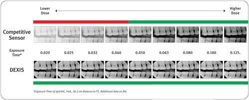 How DEXIS image quality compares to competitive sensors at different exposure times.