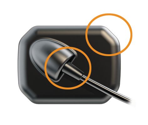 Beveled corners and a smoothly rounded casing, plus the patented cable exit, create patient comfort and aid in efficient placement.