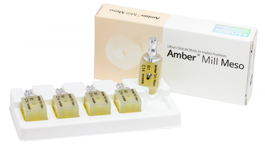 The latest millable blocks from HASS are the Amber® MIll Meso, which are made from lithium disilicate and designed for fabricating implant crowns and abutments.