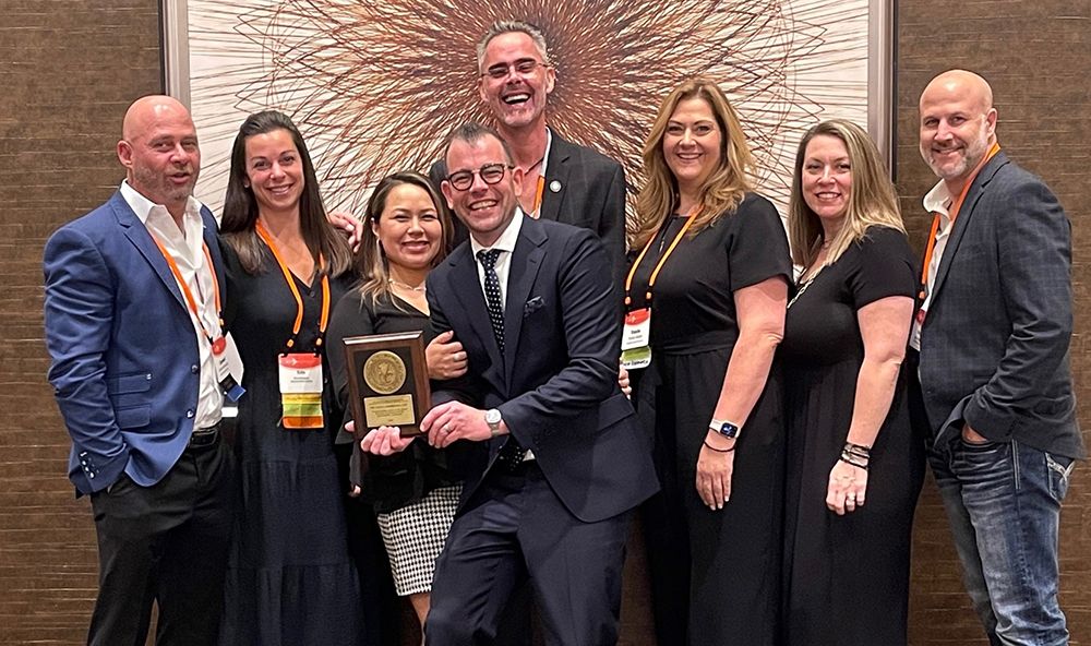 Jack Marrano, CDT, (center, front) celebrates receiving the American College of Prosthodontists Dental Technician Leadership Award with his colleagues from Absolute Dental Services.
