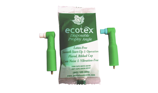 In keeping with the principles of the Ecotex brand, a unique new Ecotex Disposable Prophy Angles packaging design reportedly reduces the use of packaging materials and fuel consumption by about 40 percent and uses recycled materials and biodegradable inks. The smaller package also takes up much less space on an office shelf.