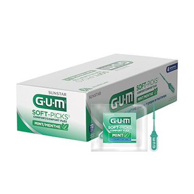 GUM® Soft-Picks® Comfort Flex Mint assist patients when it comes to between-teeth cleaning. Delivering a whole-mouth, minty fresh sensation, they are the newest offering in the GUM line of Soft-Picks, which includes GUM Soft-Picks Original and Advanced, clinically proven to clean between teeth as effectively as string flossing. They feature flexible rubber bristles that slide between teeth for gentle, safe, and effective food and plaque removal. Its bristles massage and stimulate the gums, helping to keep them healthy.
