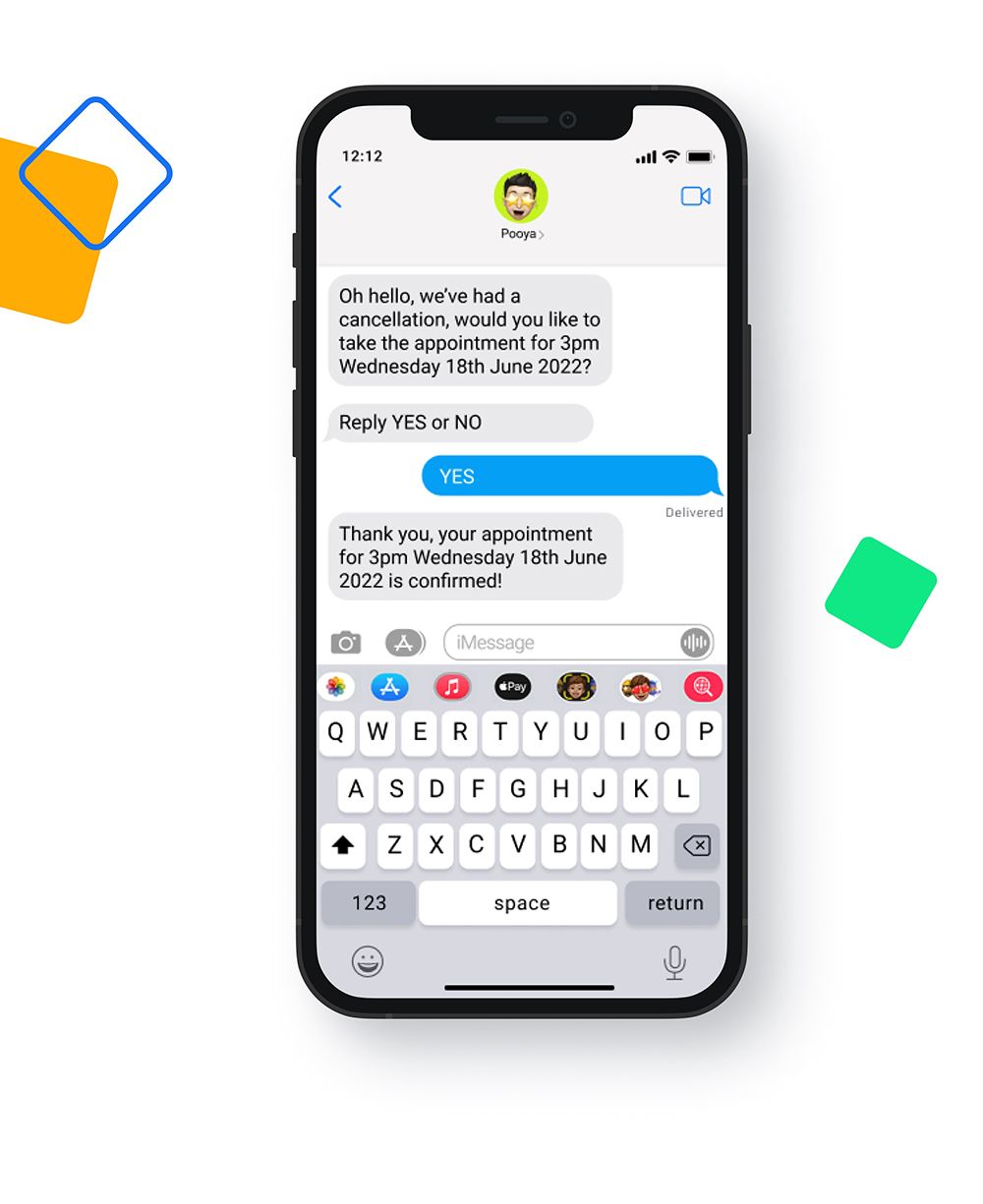 The Kancld platform messages your patients one by one, giving each person a few minutes to respond. Using this method, Kancld has been generating a 73% rebooking rate for canceled appointments—including last-minute ones.