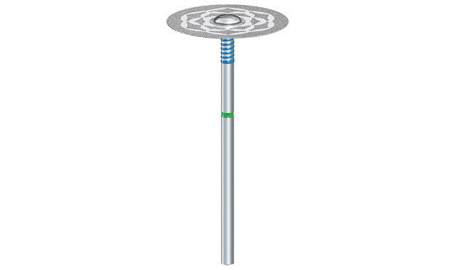 Specially designed to reportedly ensure optimal chip removal while separating, pre-cutting and contouring acrylic and veneering ceramics, new double-sided discs from Komet USA incorporate coarse diamond grains, as indicated by the instrument’s green color ring for ease of identification.