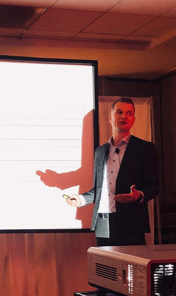 3Shape’s Rune Fisker speaks at a presentation Saturday during Lab Day 2022 in Chicago.
