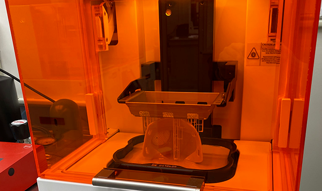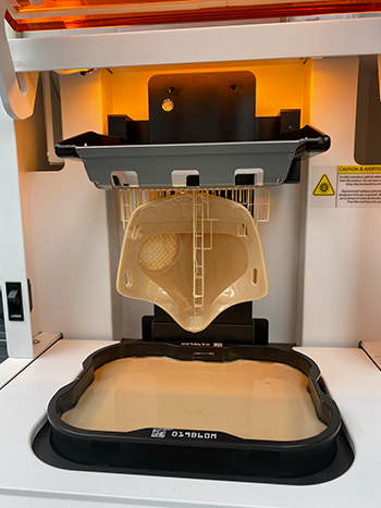 A 3D printed respirator mask is produced at Dental Arts Laboratories.