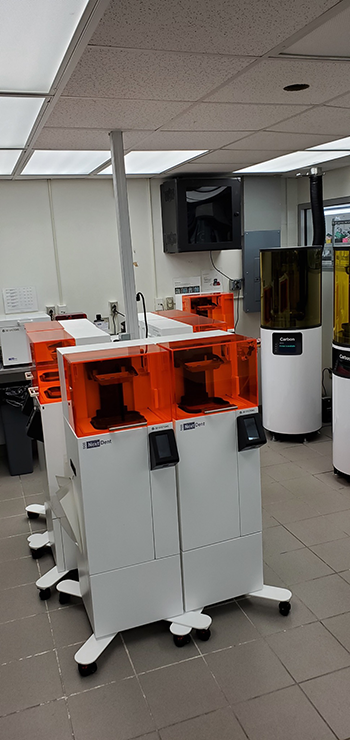 During the COVID-19 pandemic the 3D printing room at Dental Arts Laboratories in Peoria, Ill. has been busy with systems from Carbon and 3D Systems producing masks and other supplies.