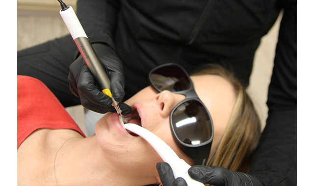 (Fig. 3) Lynn Atkinson utilizing the BIOLASE Epic Laser to perform laser-assisted periodontal therapy.