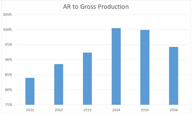 Accounts receivable to gross production
