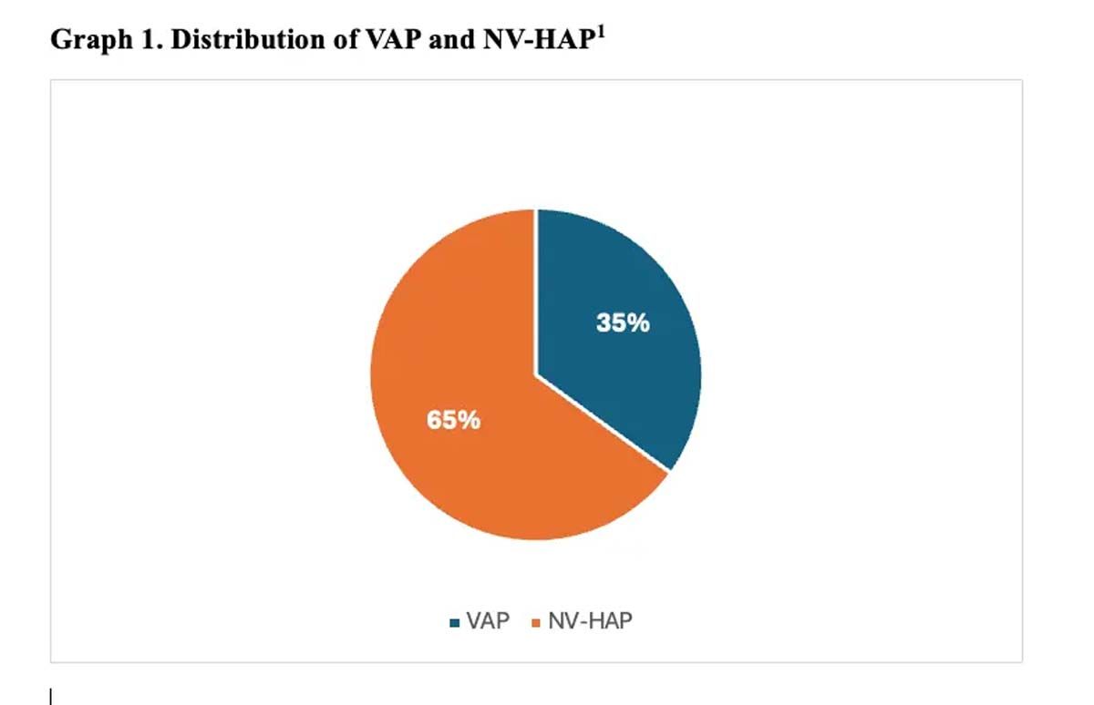 HAP is a confirmed pneumonia diagnosis that occurs 48 hours after hospitalization and is not present on admission.2 Ventilator-associated pneumonia (VAP) is associated with the use of an artificial airway, although most health care-acquired pneumonia (HAP) cases are not linked to a ventilator. Nonventilator-associated HAP (NV-HAP) is now a larger concern (Graph 1).