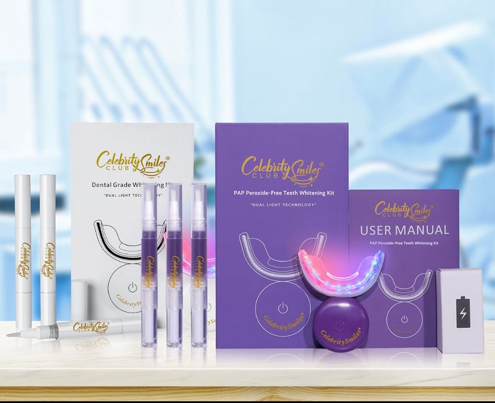 Celebrity Smiles Club features WIRELESS LED Dual Light Technology said to provide fast, safe, economical whitening for patients.